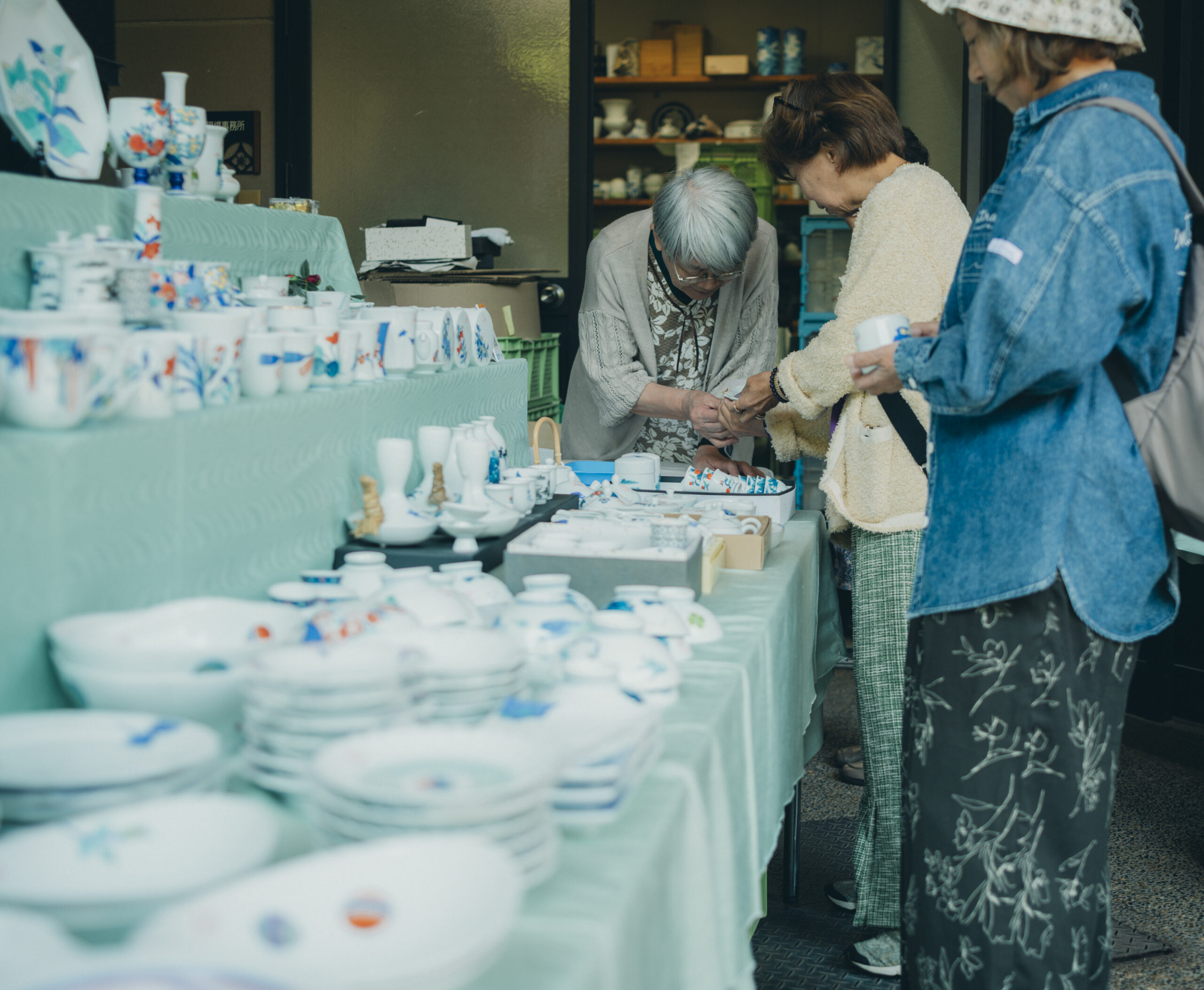 伊万里焼きのカップを片手に